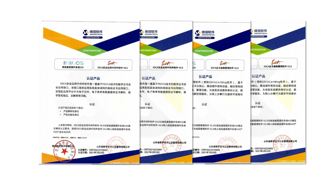 山東CA與麒麟、統(tǒng)信完成主流國產(chǎn)處理器平臺上軟硬件兼容性適配認(rèn)證