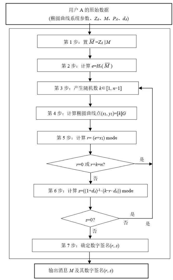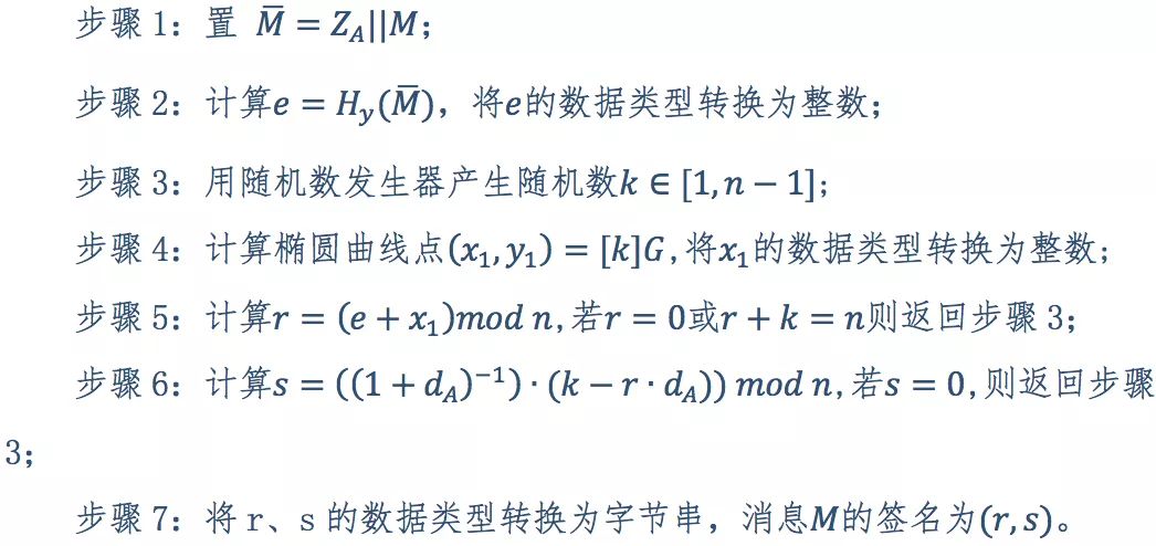 設(shè)待簽名的消息為,為了獲取消息M的數(shù)字簽名,簽名方A應(yīng)實現(xiàn)以下運算步驟(圖8):